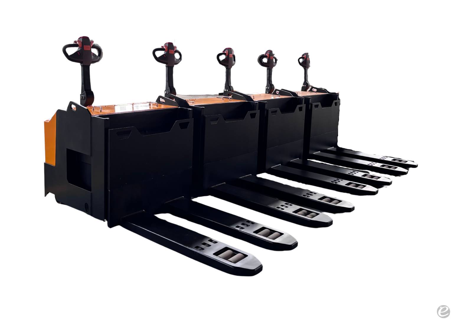 FEATURES: • 10,000lbs capacity at 24” load center • All steel chassis heavy duty weld built to ANSI B56.1 with all the parts laser cut for precision fit • Lowered height 3.5” • Raised height 9” • Fork 27” OD x 48” long x 9” wide x 2.75” thick • ø3.25” load wheels • Single heavy duty drive DC motor with two support casters • Electric brakes • Mosfet controller 24 v DC UL • Powered assisted steering tiller style. • Battery indicator key switch in handle • Single non marking poly tire x 5” dual drive with heavy duty. Two side support casters • Battery compartment 34.4” long x 25.4” height x 9” width compartment • Bdi/hour meter included and key switch • Controls in the handle for forward and reverse and up and down • Finish painted For New Custom Fork Sizes. Contact Us