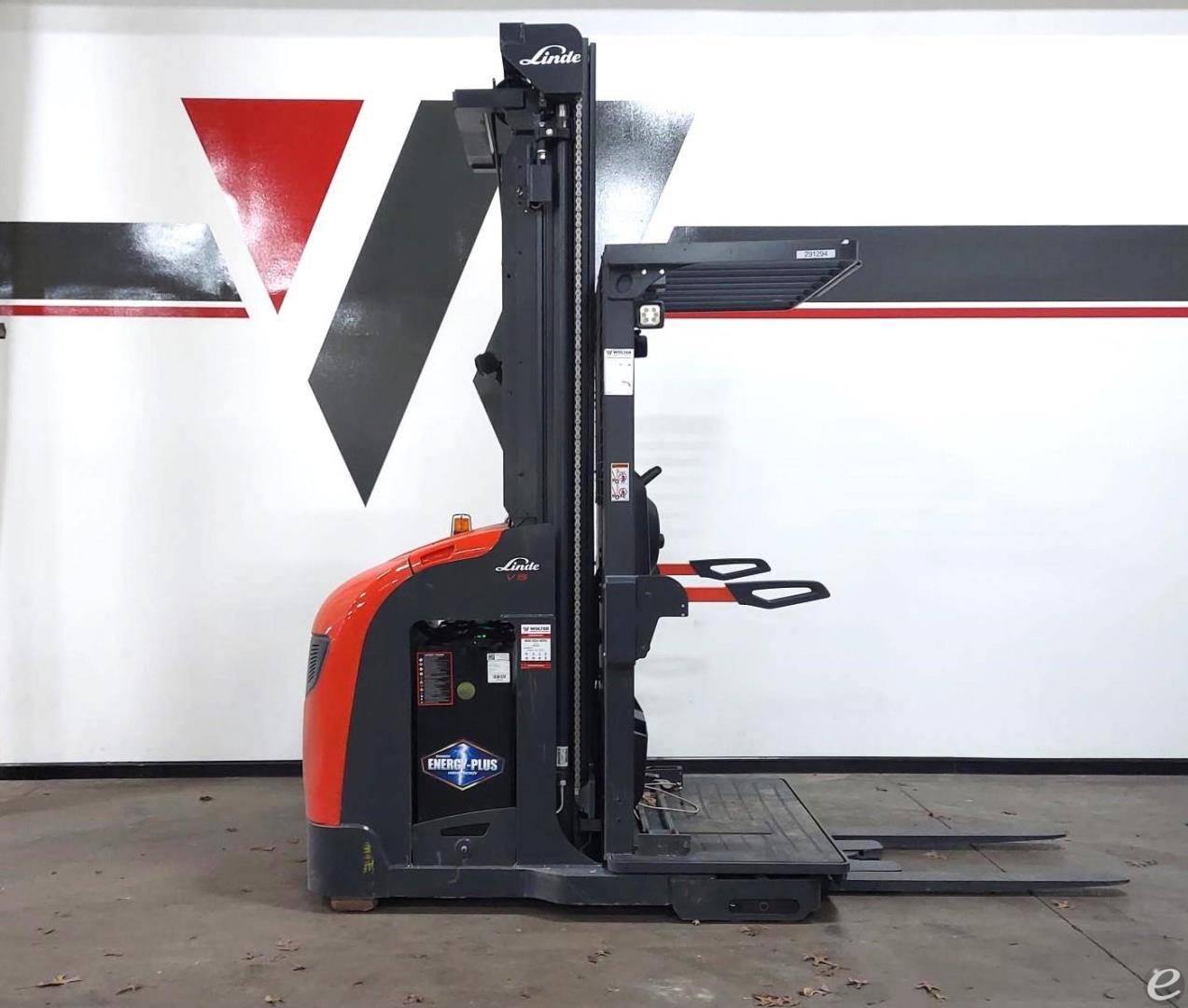 Used 2023 Linde Order Picker Model #: V15 Basic Capacity: 3,000 lbs Hours: 161.1 Fuel: 36 Volt Electric Mast Type: Triple Stage Maximum Fork Height: 266" Lowered Height: 119' Tires: Black Cushion Status: Select Warranty: 60 Days Parts & Labor (or 200 Hours), 90 Days Powertrain (or 300 Hours)