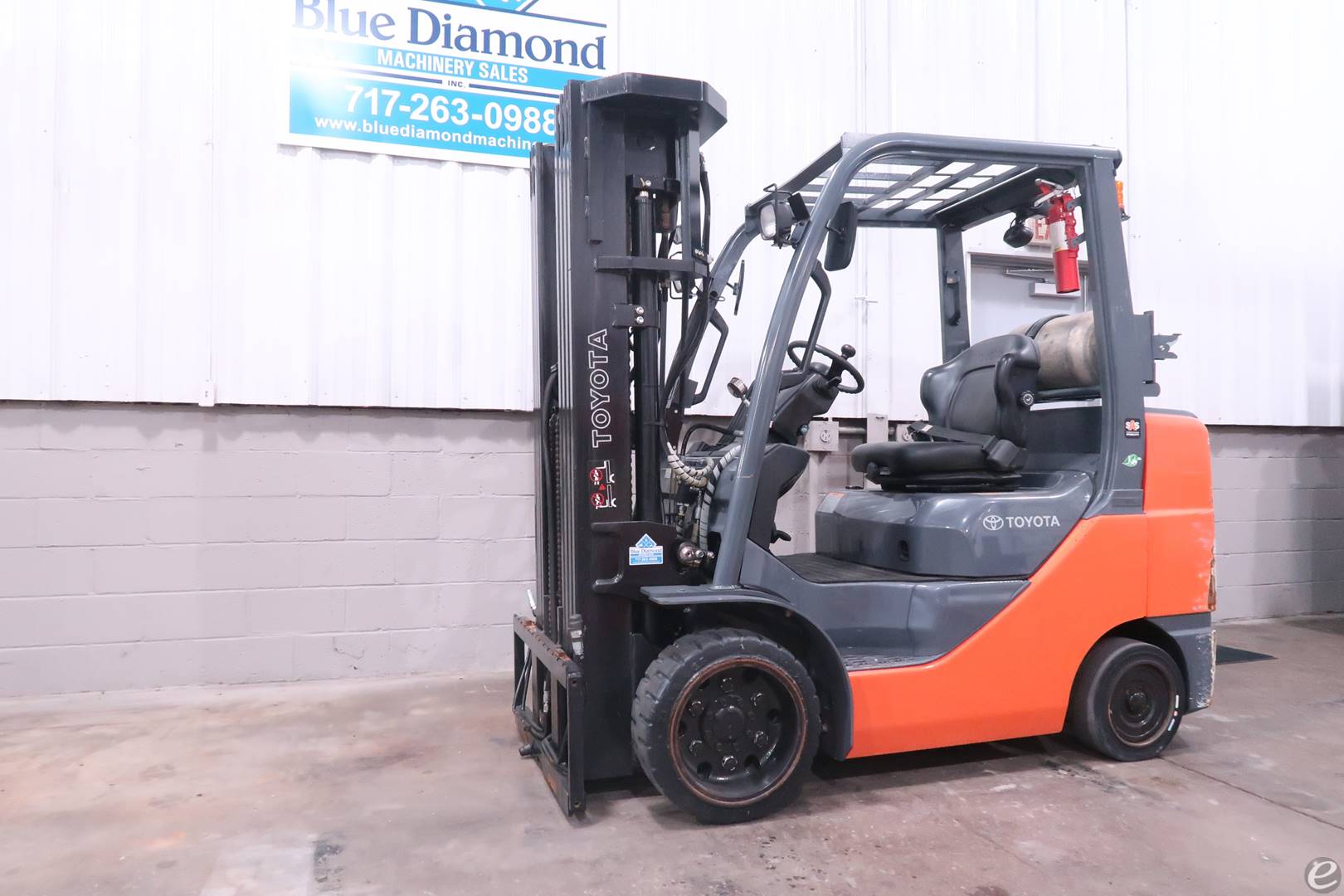 2015' Toyota 6,500 lbs. Cushion Tire Forklift with QUAD Mast - Model: 8FGCU32 - Toyota 4Y Engine - Fuel type: LP Gas - Cushion Tires - Auto Trans. - 86/240" Quad mast - 4 Way Hydraulics plumbed to Carriage - Clamp release interlock installed - Attachment ready. - Toyota patented 'SAS' Stability Control - 4,447 Original Hours - Cleaned, Serviced, Inspected & Ready to Work! - Please call Shawn with any questions. - subject to local sale. - LP Tank not included. Blue Diamond Machinery Sales, Inc. Fob: Waynesboro PA -PA sales tax unless shipped out of state by third party carrier.