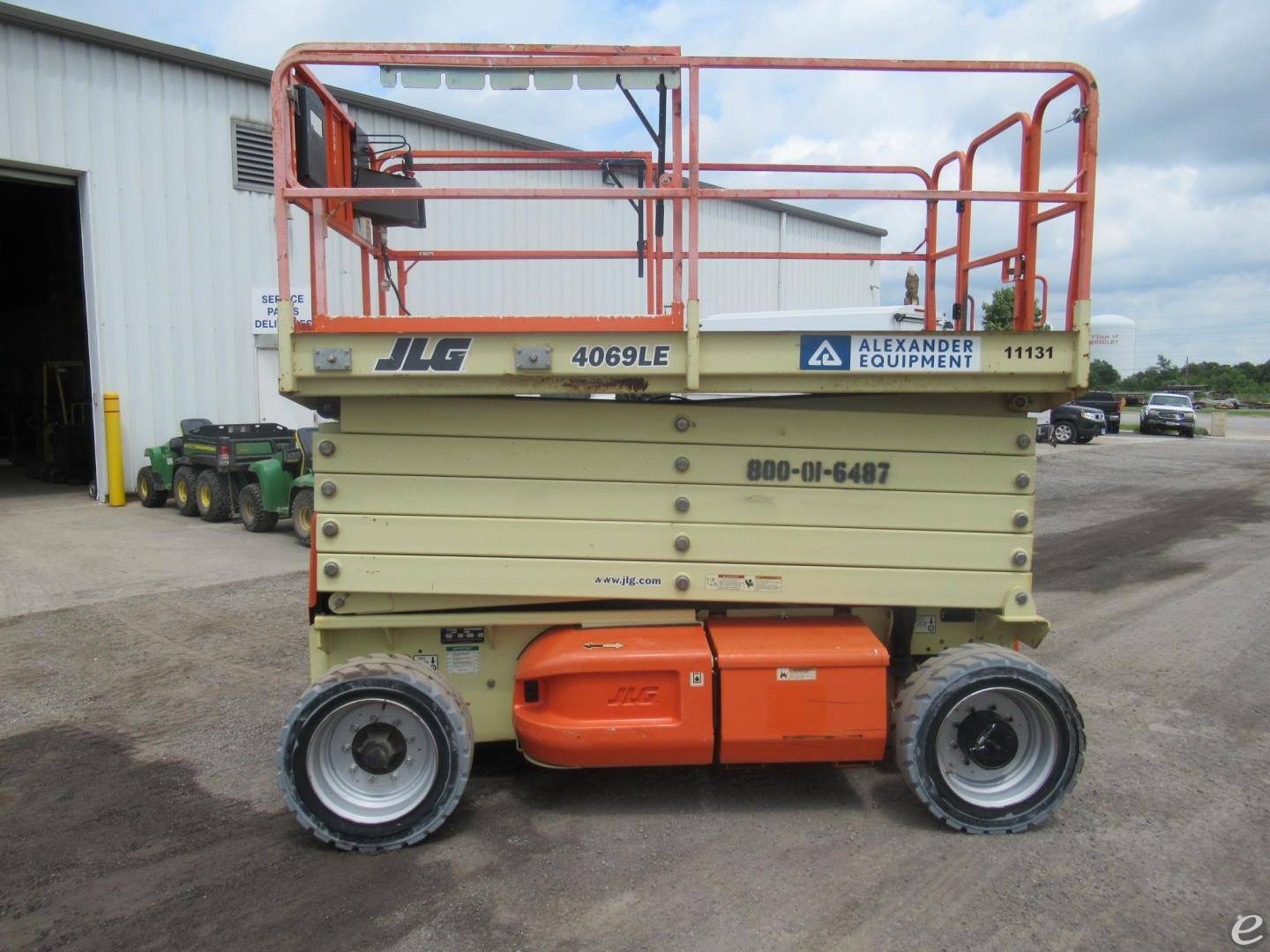 JLG 4069LE electric rough terrain scissor lift for sale. Features: 40' platform height, 800 lb platform capacity, non marking tires and extension deck. Like every used JLG electric scissor lift for sale at Alexander Equipment, this one has been safety inspected.