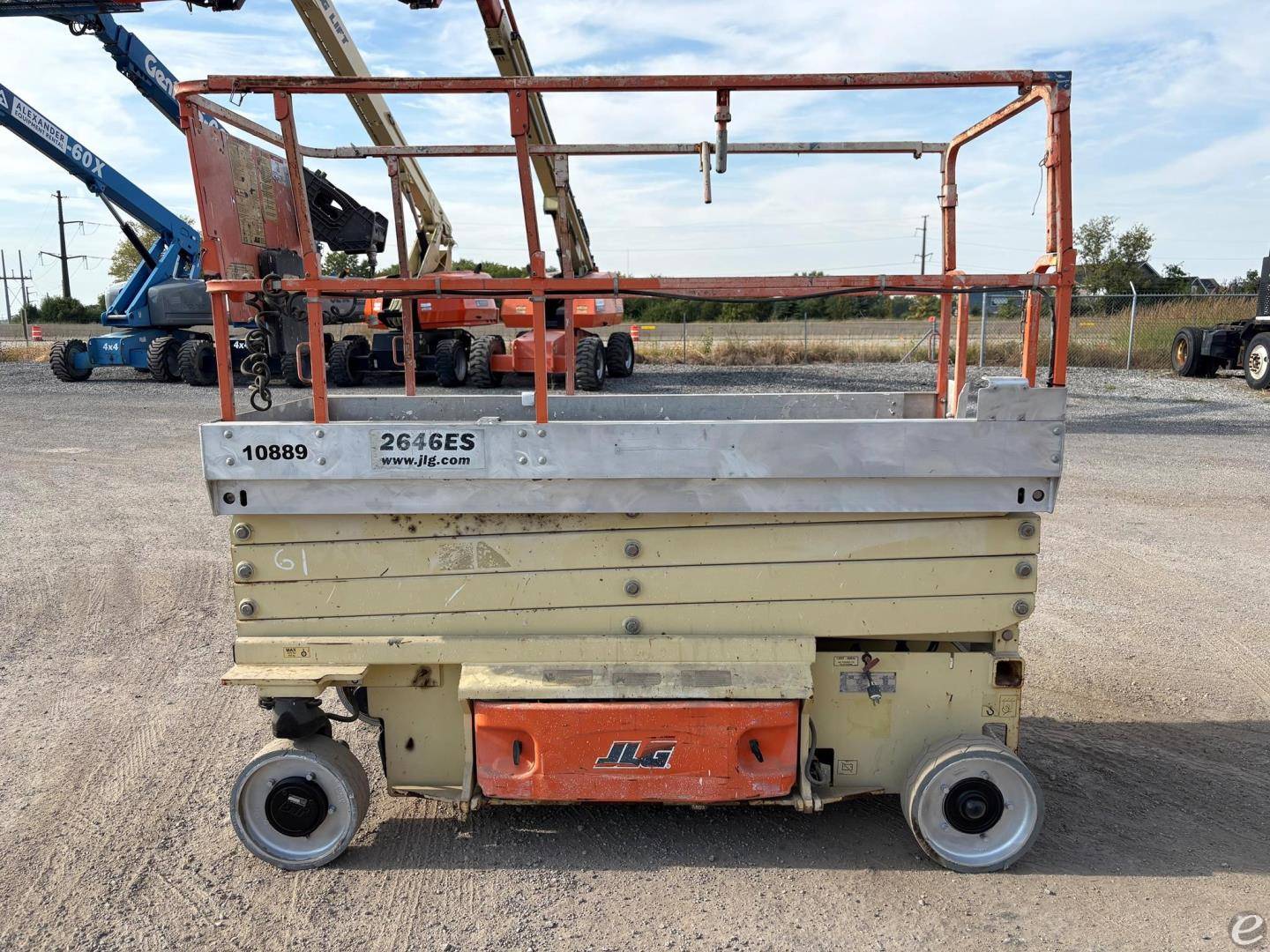 JLG 2646ES electric scissor lift for sale. Features: 26' platform height, recent batteries, 1000 lb platform capacity, non-marking tires and extension deck. Like every used JLG electric scissor lift for sale at Alexander Equipment, this one has been safety inspected.