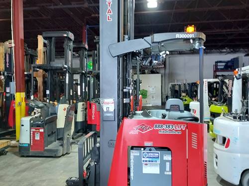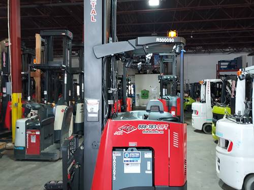 The Raymond 750DR32TT has a maximum lift capacity of up to 3,200 lbs, making it well-suited for handling heavy loads in a narrow aisle setting. It also features an impressive lift height capability, reaching up to 30 inches, allowing operators to efficiently store and retrieve products from elevated locations in warehouses or retail environments.