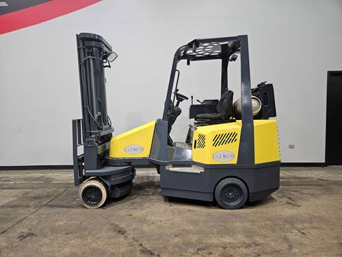 The Aisle-Master 44NG is designed with versatility and efficiency in mind. It features an articulated design, allowing it to navigate narrow aisles and tight spaces with ease. This model comes with a four-wheel configuration, enhancing stability and maneuverability. Powered by LP gas, it provides a robust solution for both indoor and outdoor applications while minimizing emissions. The sit-down operator design offers comfort for long hours of use, making it ideal for warehouses and distribution centers.