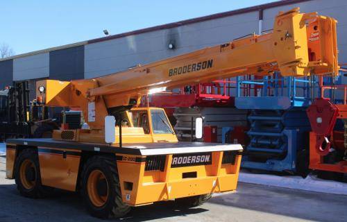 The Broderson IC35-2D is a compact carry deck crane known for its versatility and maneuverability. It features a low-profile design which enables it to operate efficiently in confined spaces. This crane comes with a robust lifting capacity, and its four-wheel drive enhances stability and performance on various terrains. Additionally, the IC35-2D offers easy operation with user-friendly controls, making it suitable for a range of industrial and maintenance tasks.