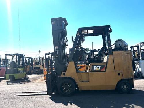 The Cat GC55K forklift runs on propane, which offers several advantages. Propane is a clean-burning fuel, resulting in lower emissions compared to diesel or gasoline engines. This makes the GC55K an environmentally friendly option for companies looking to reduce their carbon footprint. Additionally, propane forklifts typically have lower operating costs and are easier to refuel, enhancing overall productivity.