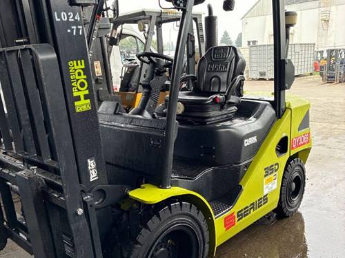The Clark S35D forklift has a lifting capacity of 3,500 lbs (1,588 kg), making it suitable for various material handling tasks in warehouse and industrial settings. Its robust design ensures that it can handle heavy loads effectively, contributing to increased productivity.