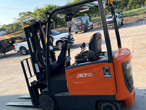The Doosan BC30S-7 is a forklift known for its reliability and performance in various material handling applications. It features a powerful, energy-efficient engine, advanced ergonomic design, and enhanced safety features. This model typically includes improved operator comfort and visibility, as well as easy maintenance access, making it a popular choice for warehouses and industrial sites. The BC30S-7 also offers precise control and durability, ensuring effective operation in demanding environments.