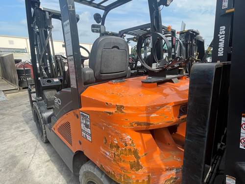 The Doosan G30N7 runs on LP gas, which offers several advantages for users. LP gas forklifts are known for their fuel efficiency, lower emissions, and quieter operation compared to gasoline or diesel models. Additionally, they provide longer run times, especially in indoor environments where air quality is a consideration.