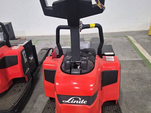 The Linde Electric Walkie/Rider Pallet Jack features a robust design, excellent maneuverability, and an ergonomic rider platform. It offers advanced safety features, efficiency in load handling, and low maintenance requirements, making it ideal for various warehouse and distribution center tasks.