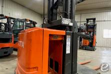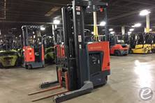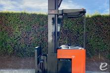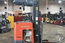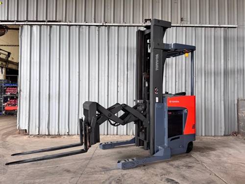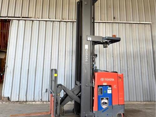 The Toyota Electric Narrow Aisle Double Reach forklift typically has a load capacity of up to 3,000 to 4,500 lbs, depending on the specific model and configuration. This makes it ideal for handling heavy loads in tight spaces.