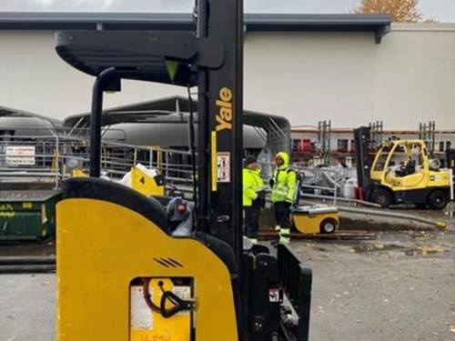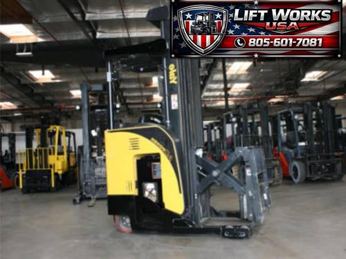 The Yale Electric Narrow Aisle Double Reach forklift typically offers a maximum lifting height of up to 30 feet, making it ideal for high storage applications in tight spaces.
