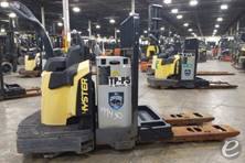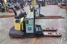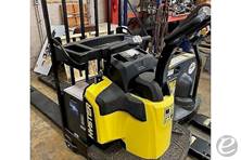 The Hyster Electric Walkie/Rider Pallet Jack typically has a lifting capacity of up to 4,500 pounds, making it suitable for a variety of warehouse and material handling tasks.