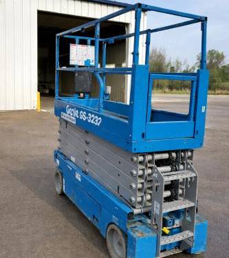 The Genie GS3232 comes equipped with several safety features, including guardrails, a tilt sensor, and an emergency stop button. Additionally, it features non-slip surfaces and a robust base for added stability while operating at height, ensuring a safer working environment for operators and personnel nearby.