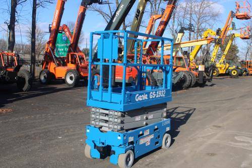 The Genie GS1932M has compact dimensions, with a platform width of 32 inches. This narrow width allows the lift to navigate through tight spaces and doorways, making it highly versatile for work in congested areas such as retail environments or construction sites with limited room.