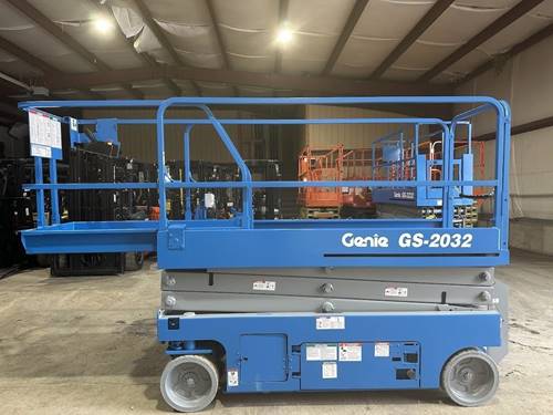 The Genie GS2032 scissor lift offers a maximum working height of 32 feet (9.75 meters). This allows for safe access to elevated work areas, making it suitable for a variety of applications, including construction, maintenance, and installation tasks.