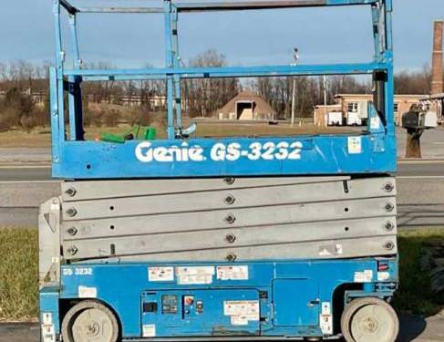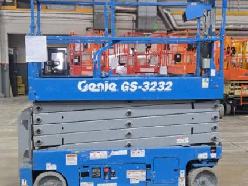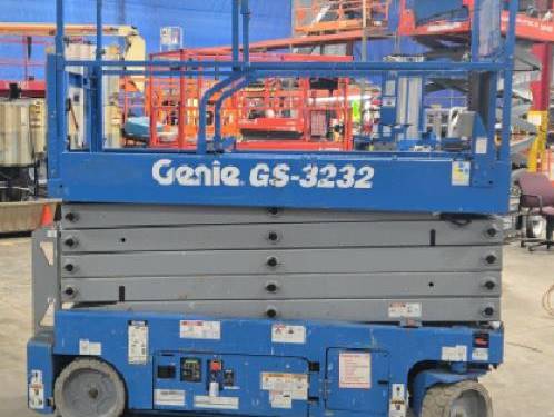 The Genie GS3232 comes equipped with several safety features, including guardrails, a tilt sensor, and an emergency stop button. Additionally, it features non-slip surfaces and a robust base for added stability while operating at height, ensuring a safer working environment for operators and personnel nearby.