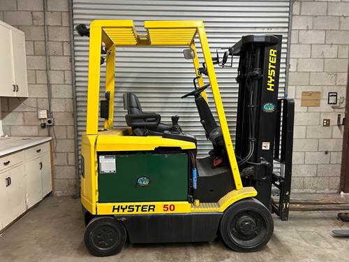 While the Hyster E50Z is primarily designed for indoor use, it can handle smooth, level outdoor surfaces under certain conditions. However, its electric design means that exposure to excessive moisture and rugged terrain can affect performance and longevity. If outdoor use is necessary, it's best to consult with your dealer about specific conditions and potential equipment modifications to ensure optimal performance and safety.
