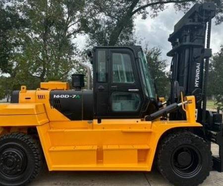The Hyundai 160D-7A pneumatic tire forklift stands out in the competitive material handling market with its robust diesel engine, offering both performance and reliability for demanding operational environments. Built from 2015 onwards, this model is engineered for superior outdoor use, featuring enhanced right-angle stacking and a tighter turning radius compared to many of its rivals, making it a preferred choice for tight spaces. With a remarkable lifting capacity, it is equipped to handle heavy loads effortlessly. While the standard diesel engine provides exceptional power, optional fuel types expand its versatility to accommodate various operational needs. As of now, the 160D-7A is one of the latest additions to Hyundai's forklift lineup, ensuring users benefit from cutting-edge technology and design. Whether you are in construction, warehousing, or logistics, the Hyundai 160D-7A delivers the performance and durability required for efficient and safe material handling.