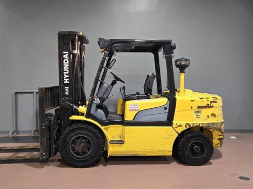The Hyundai 50DA-7E forklift stands out in the crowded market of diesel-powered pneumatic tire models with its exceptional right angle stack and maneuverability capabilities, making it an ideal choice for various outdoor applications, from construction sites to lumber yards. Built to optimize performance and efficiency, this model features a robust diesel engine that delivers reliable power, and while no alternative fuel options are currently available, its performance is designed to meet the demands of heavy lifting tasks with a substantial load capacity. This model, manufactured in recent years, demonstrates Hyundai's commitment to innovation and quality with no newer versions released, ensuring that operators benefit from the latest technologies and enhancements. With its sturdy four-wheel sit-down design and capability to navigate tight spaces with ease, the 50DA-7E forklift is engineered for those who require dependable and versatile equipment in their operations.