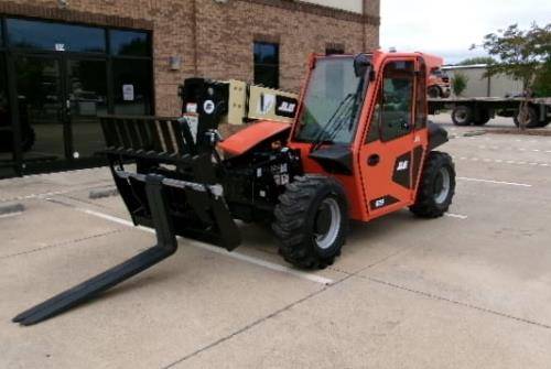 The JLG 519 Telehandler is compatible with a range of attachments to increase its versatility on the job site. Common attachments include forks for pallet handling, buckets for material moving, and jib extensions for increased reach. Utilizing these attachments, operators can perform various tasks, from loading and unloading materials to lifting items to elevated heights, making the telehandler suitable for construction, agriculture, and landscaping applications.