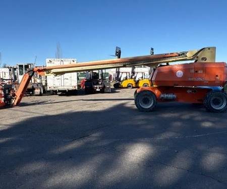 The JLG 860SJ is designed for excellent maneuverability, featuring a tight turning radius and advanced controls. Operators can easily navigate through confined spaces, making it a practical choice for both large and small job sites. Additionally, the boom lift's telescopic design allows for precise positioning in hard-to-reach areas.