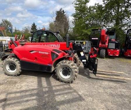 The Manitou MT625 Telehandler has a lifting capacity of up to 2,500 kg (5,500 lbs). This makes it suitable for handling various materials on construction sites, farms, and industrial applications where heavy lifting is required.