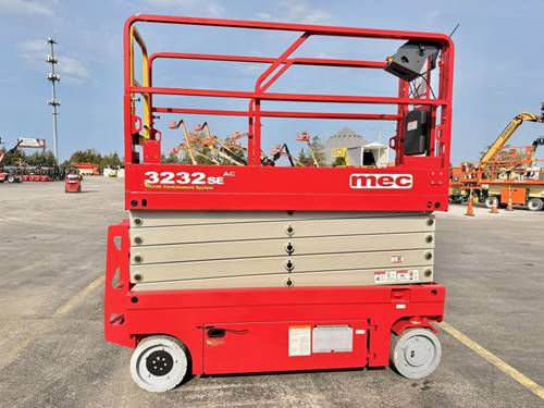 The MEC 3232SE AC is known for its electric powered drive system, offering emissions-free operation and being suitable for indoor and outdoor use. It features a scissor lift design with a platform height extending up to 32 feet, compact dimensions for improved maneuverability in tight spaces, and dual power sources with alternating current (AC) and lithium-ion battery options, providing flexibility and extended operation time. Additionally, it is equipped with non-marking tires and offers advanced safety features like tilt sensors and pothole guards.