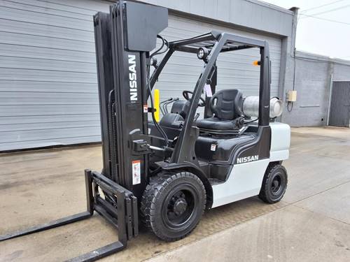 Regular maintenance is essential to keep the Nissan MUGL02A30LV forklift operating efficiently. This includes routine inspections of the pneumatic tires for wear and proper inflation, checking the hydraulic fluid levels, and ensuring all moving parts are lubricated. Additionally, it is recommended to follow the manufacturer's service schedule for more comprehensive maintenance, such as checking the engine and transmission systems. Keeping up with these requirements can prolong the lifespan of the forklift and ensure optimal performance.