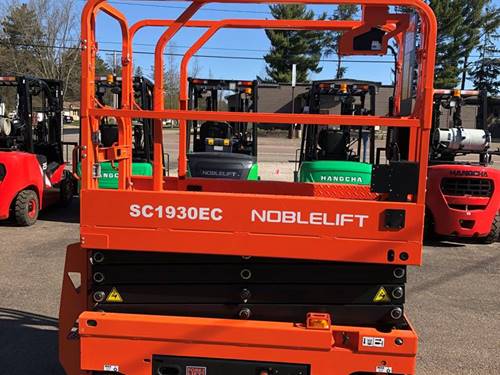 The Noblelift SC1930EC-LI is a scissor lift that features a lithium-ion battery, offering advantages such as longer lifespan, faster charging, and lower maintenance compared to traditional lead-acid batteries. It is designed for indoor and outdoor use, providing enhanced efficiency and reliability for various lifting tasks. The lift also stands out for its compact design, making it maneuverable in tight spaces, and it typically includes advanced safety features, contributing to its suitability for a variety of work environments.