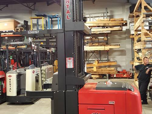 This model has a lifting capacity of 4,500 pounds, making it suitable for various material handling tasks. Whether you're stacking pallets or retrieving products from high shelves, the 730R45TT provides reliable performance while maintaining stability and safety during operation. Always ensure that the load is evenly distributed and within the rated capacity to guarantee safe handling.