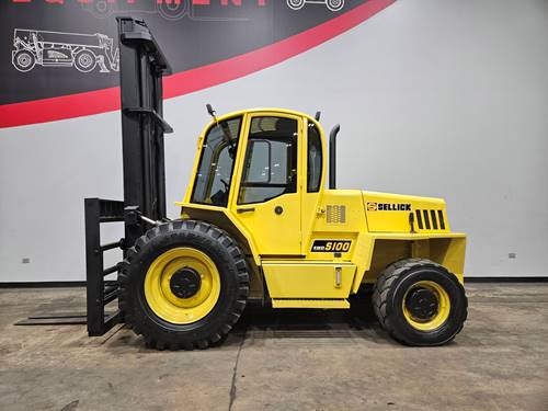 Yes, the Sellick S100J4E-4 is specifically designed for rough terrain applications, which means it can operate effectively in a variety of adverse weather conditions. Its rugged construction and large tires provide stability and traction on slippery or uneven surfaces, making it suitable for outdoor operations even in rain or muddy conditions. However, operators should always assess site conditions and exercise caution to ensure safe operation during inclement weather.