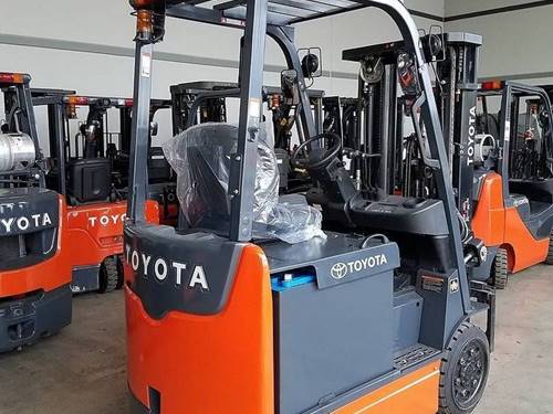 This forklift model operates on diesel fuel. Diesel-powered forklifts are known for their durability and efficiency, which makes them ideal for heavy-duty lifting and long-duration operations in warehouses and construction sites.