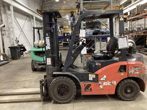 The Tailift FD100P comes equipped with various safety features to protect operators and bystanders. Key safety elements include a robust operator protective structure (OPS) to shield the driver, an advanced braking system for reliable stopping power, and clear visibility through well-designed mast and fork arrangements. Additionally, the forklift includes safety alarms and lights to enhance visibility, particularly in low-light conditions or crowded environments.