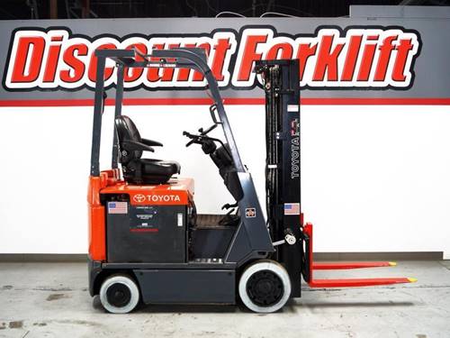 The Toyota 8FBC15U is an electric forklift known for its reliability, energy efficiency, and performance in warehouse settings. It features an AC drive and lift system, providing enhanced battery efficiency and lower maintenance needs. It also includes ergonomic designs for operator comfort, such as a multifunction display and adjustable seats. The model is part of Toyota's 8-Series, which is recognized for safety components like the System of Active Stability and Active Mast Function Controller, helping to reduce the risk of accidents.