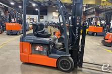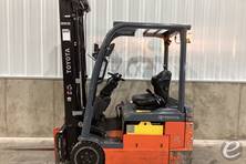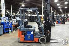 The Toyota 8FBE18U is known for its compact three-wheel design, making it ideal for maneuverability in tight spaces. It features an AC drive system for improved energy efficiency and performance. Additionally, this forklift model is equipped with advanced ergonomics, such as an easy-access operator compartment and adjustable controls, to enhance operator comfort. Its regenerative braking system helps to extend battery life, and the machine is designed with safety features like Toyota's System of Active Stability.