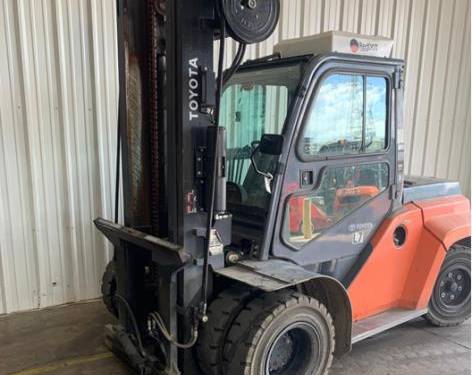 The Toyota 8FD70U has a lifting capacity of up to 7,000 pounds. This makes it suitable for handling various heavy materials and equipment, making it an ideal choice for warehouses and distribution centers where robust lifting capabilities are essential.