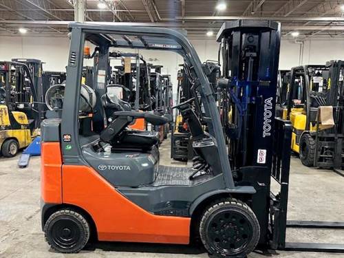 The Toyota 8FGCU20 forklift has a lifting capacity of 4,000 lbs (approximately 1,800 kg). This makes it suitable for a variety of warehouse and industrial applications where medium-weight loads need to be lifted and moved efficiently.