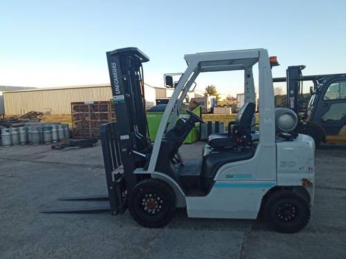 The Unicarriers MP1F2A25LV is equipped with multiple safety features aimed at protecting both the operator and the load. These include an operator presence system, which ensures that the forklift only operates when the operator is in a safe position, and stability features that prevent tipping during lifting and maneuvering. Additionally, the forklift comes with a clear view mast and overhead guard to enhance visibility, reducing the risk of accidents in busy environments.