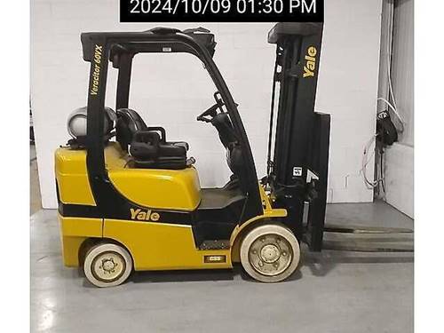 The Yale GC060VX forklift has a lifting capacity of approximately 6,000 pounds. This makes it an ideal choice for various applications, including warehouse operations and material handling, where maneuverability and strength are essential.