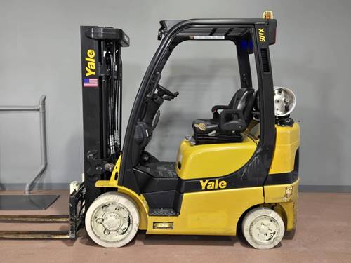 The Yale GLC050V forklift is designed to handle a maximum load capacity of up to 5,000 pounds. This capacity makes it suitable for a variety of indoor warehouse tasks, such as lifting pallets, stacking goods, or transporting heavy materials. It's essential to ensure that the load is evenly distributed and within the lift capacity to maintain optimal safety and performance during operation.
