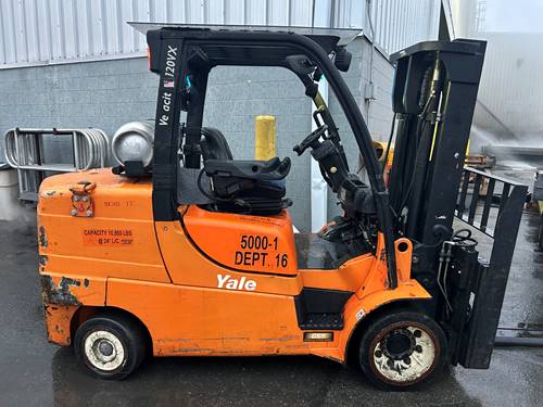 The Yale GLC120VX is equipped with several features designed to enhance operator comfort and safety. These include an ergonomic seat, adjustable steering, and intuitive controls for easy operation. Additionally, the forklift is built with a robust frame and safety systems, such as an automatic brake system, ensuring a secure and comfortable working environment for the operator.