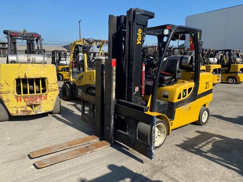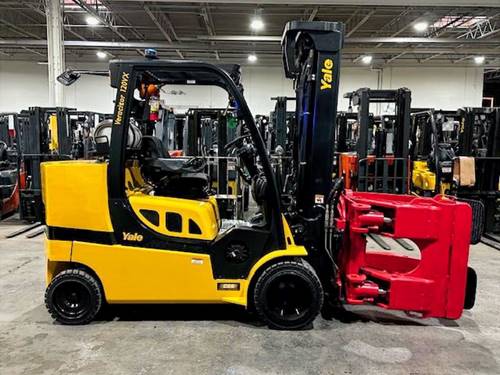 The Yale GLC120VX is a heavy-duty forklift known for its robust design and suitability for demanding industrial applications. It features a high-capacity lift, often around 12,000 lbs or more, making it ideal for handling large and heavy loads. The forklift includes advanced ergonomic features to enhance operator comfort and productivity, such as an adjustable seat and intuitive controls. It also incorporates efficient and reliable engines that ensure strong performance and lower emissions. The GLC120VX is designed for durability and efficient operation in various environments, including warehouses and manufacturing facilities.