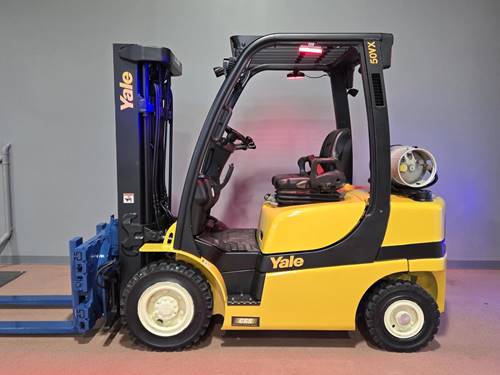 The Yale GLP050VX forklift has a lifting capacity of up to 5,000 pounds, making it suitable for handling a variety of loads in both indoor and outdoor environments.