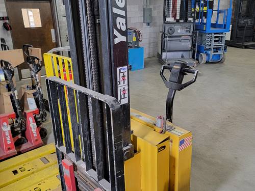To maintain the Yale MSW030 in optimal condition, regular maintenance checks are essential. Operators should inspect the battery level and connections regularly, check the brakes and steering systems, and ensure that the forks are clean and lubricated. It's also advisable to have a professional technician perform periodic preventive maintenance to address more complex components and to ensure compliance with all safety standards.
