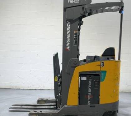 The Electric Narrow Aisle Single Reach, often referred to as the Single Reach Truck, falls under the umbrella of highly specialized forklifts. This type of forklift is designed to operate in tight spaces, specifically in narrow aisle warehouses. As the name suggests, it's powered by electricity, making it an eco-friendly option compared to its fuel-powered counterparts. The key feature of this machinery is its single reach mechanism that allows for the handling and retrieval of pallets in situations where double deep racking is not implemented. Popular types of these vehicles vary across reputable names in the industry, with their differences often centered around load capacity and reach height. When considering a purchase, factors such as aisle width, lift height requirement, load capacity and battery life should be kept in mind. In terms of context of use, Electric Narrow Aisle Single Reach forklifts are most commonly employed in spaces like supermarkets, retail outlets, and other locations where maximization of storage space is a priority. Their unique design enhances operational efficiency in restrictive environments with narrow aisles without compromising on safety or performance.